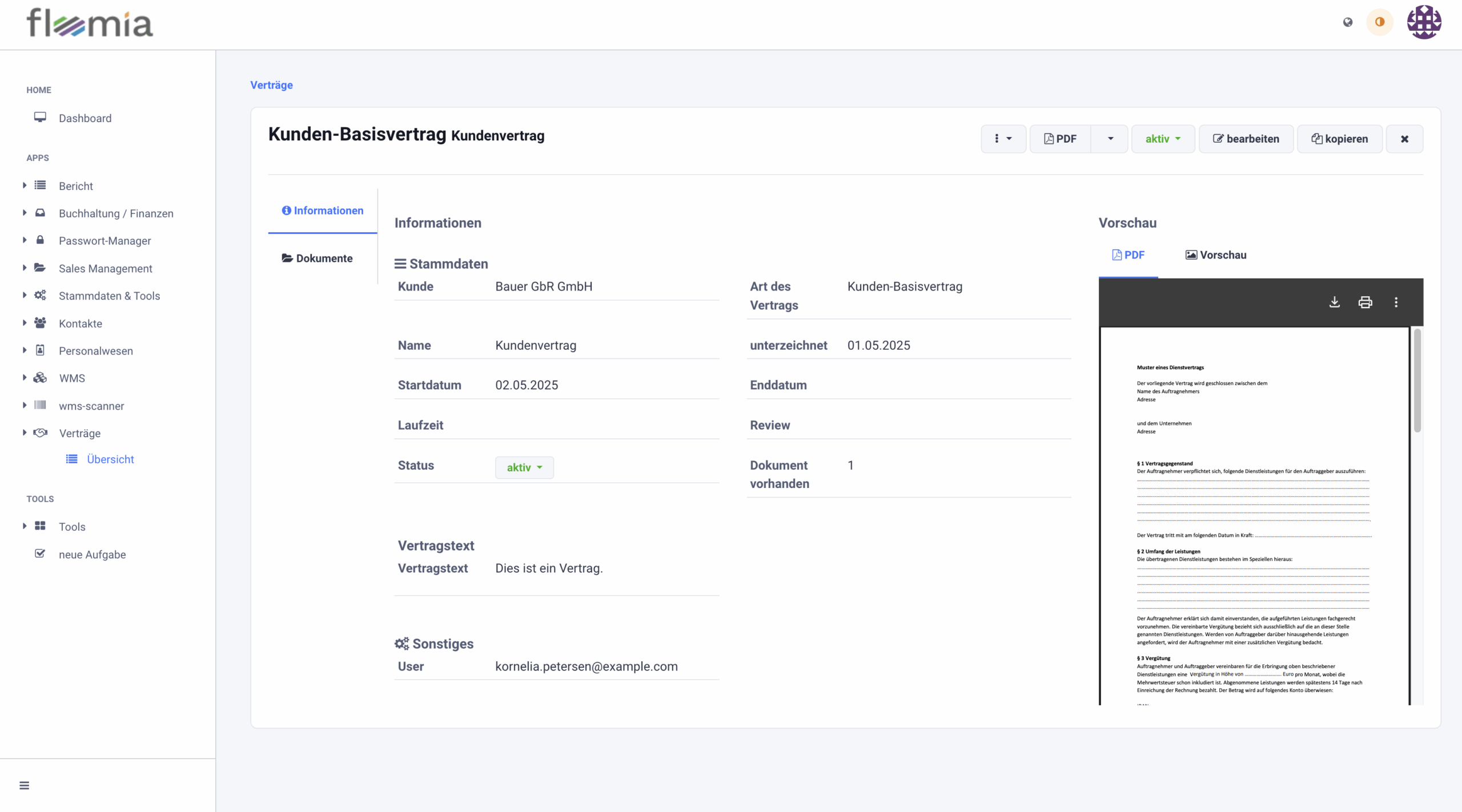 Erstelle automatisch Verträge und Rechnungen, basierend auf Kundenanfragen und Angeboten.